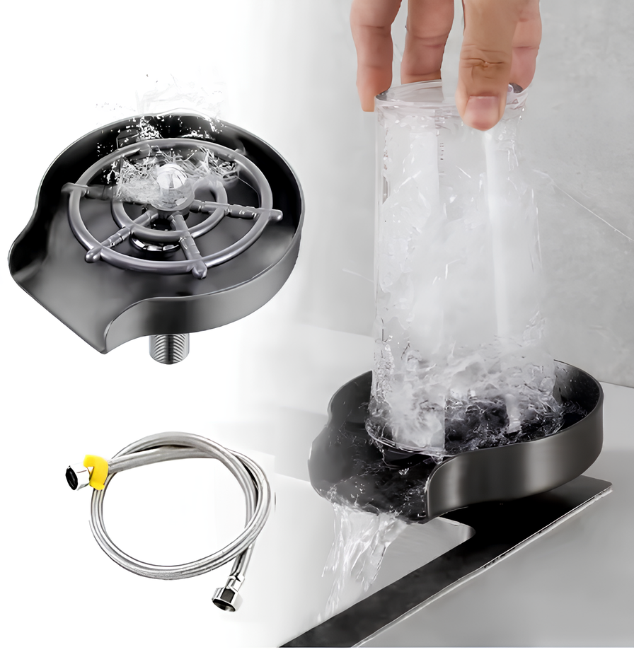 Bespaar tijd, water én frustratie. Zet de Glazenspoeler op je aanrecht en ervaar het verschil bij elke spoelbeurt.